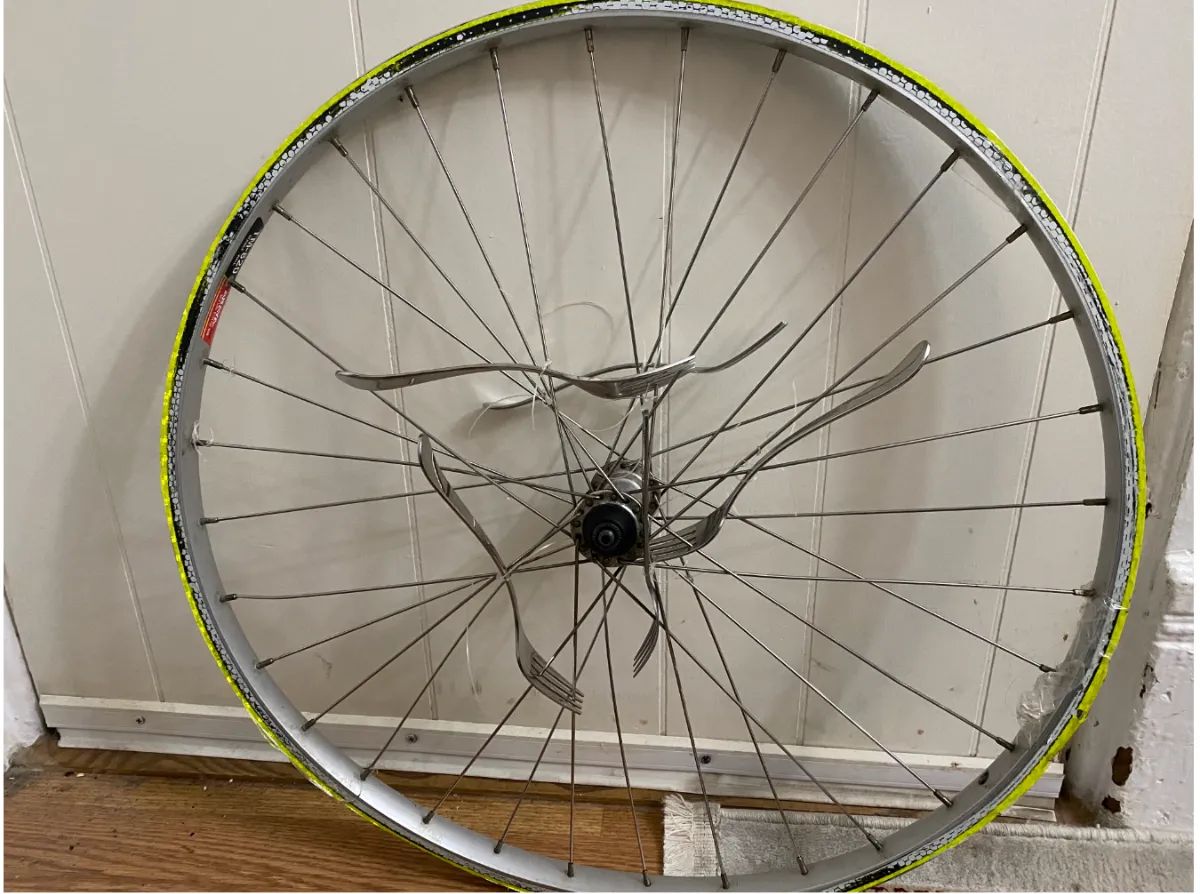 percussion trio for bike pumps, balloons, bike wheel, electromagnetic activity